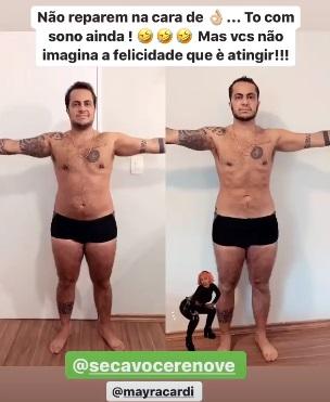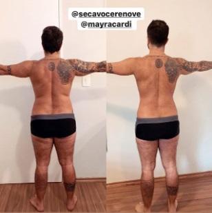 Thammy Miranda impressionou seus seguidores nesta quinta-feira, 7, ao mostrar o antes e depois de seu emagrecimento. O modelo posou com a mesma roupa íntima algum tempo após ter iniciado a dieta restritiva de Mayra Cardi e comparou os registros, alegre sobre os resultados. As informações são da Revista Caras.