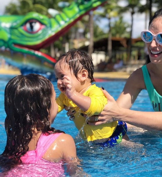 Thyane Dantas tirou o sábado (3) para fazer um programa bem família! A mulher de Wesley Safadão foi com os filhos, Ysis e Dom, e o enteado, Yhudi, ao parque aquático Beach Park, em Fortaleza (CE), onde eles moram. Feliz, a empresária compartilhou registros fofos do passeio com a criançada no Instagram com os fãs. As informações são da Quem.