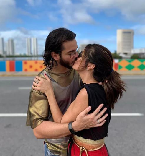 "E quem disse que papangu não beija? Se na quarta-feira só restam cinzas, é porque a gente manda brasa no carnaval. #cadaminutoimporta #eueela #carnaval #recife", disse ele na legenda.