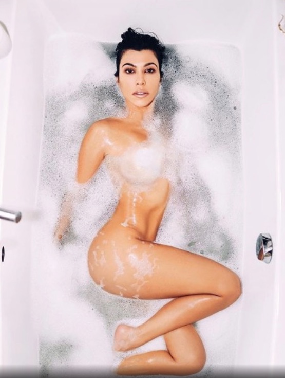 Kourtney Kardashian usou o Instagram para compartilhar um clique sensual, em que aparece nua em uma banheira, mas suas pernas chamaram a atenção de internautas que a acusaram de errar a mão no Photoshop.
