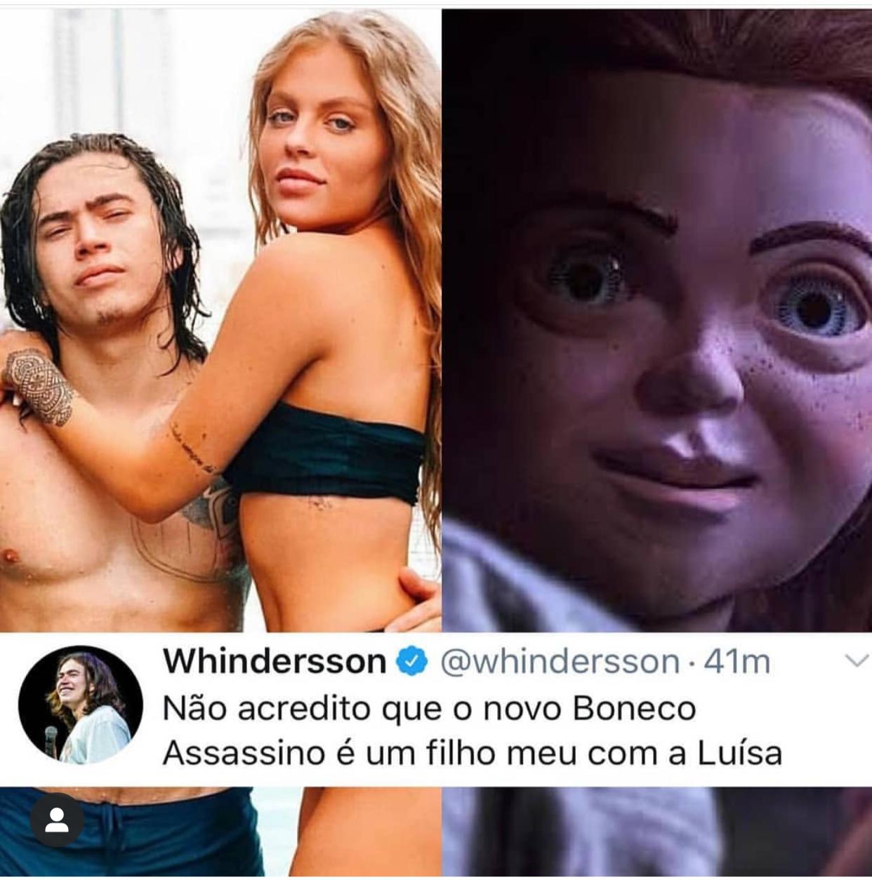 "Não acredito que o novo Brinquedo assassino é um filho meu com a Luísa (Sonza, sua esposa)", afirmou Whindersson.
