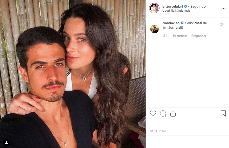 Enzo Celulari publicou na noite desta quarta-feira, 3, uma linda selfie ao lado da irmã, Sophia Raia. Nos comentários, Xand Avião decidiu fazer um elogio, mas acabou confundindo a irmã do rapaz com sua namorada.