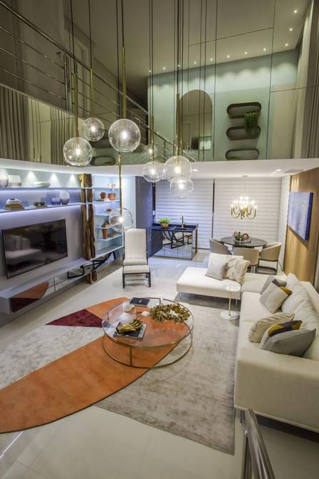 O duplex tem cores neutras, móveis em tons de azul, e também madeira, que remetem ao rústico, um sofá em formato de L, uma TV que sai do teto do quarto do casal, além de uma peça exclusiva que corresponde à paixão do cantor pela música. Trata-se de um enorme violão de madeira que homenageia a natureza, e claro, aligação de Zezé Di Camargo com sua profissão. Um luxo só! Veja fotos e vídeo do apê: