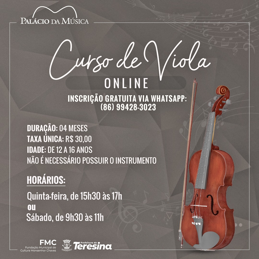 Desde a última segunda-feira(26) teve início o agendamento para matrículas das turmas da Orquestra Escola de Teresina, que funciona no Palácio da Música de Teresina. Estão sendo ofertadas vagas para os cursos de viola e violoncelo ministrados totalmente de forma online, com duração de quatro meses. Para participar o interessado terá que efetuar o pagamento de taxa única no valor de R$ 30,00 (trinta reais).
