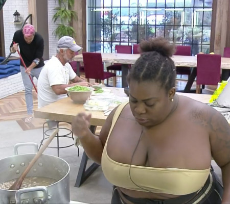 "Eu não sabia que sua função era somente a sala e o quarto", continuou a cantora, que foi ignorada pelo peão, claramente irritado.