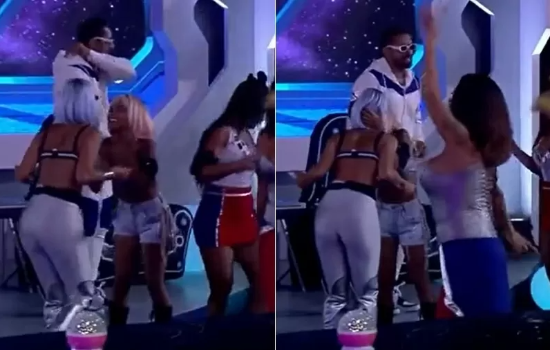 Terceiro beijo das peoas Esta é a terceira vez que Aline Mineiro e Sthe Matos trocam beijos durante uma festa do reality show da RecordTV. No último final de semana, as câmeras do Playplus - plataforma de streaming do reality show - não exibiram a cena. Rico Melquiades, no entanto, foi o encarregado de anunciar aos peões e ao público que assistia o evento sobre a pegação das participantes.