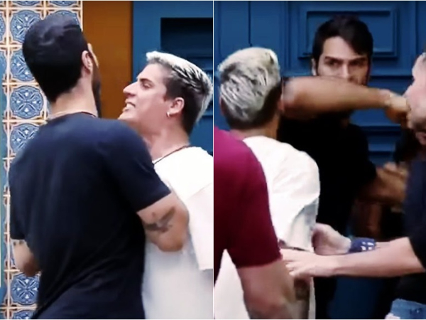 Tiago cuspiu no rosto de Shay, que revidou. Durante o programa ao vivo, o ex-padrasto do Neymar fez o movimento de agredir Shay com uma garrafa, que ele pegou durante o intervalo, e o peão levantou o cotovelo.