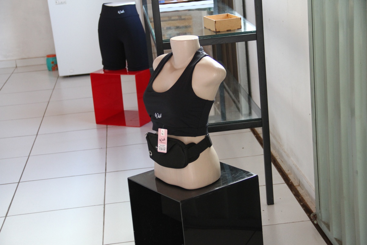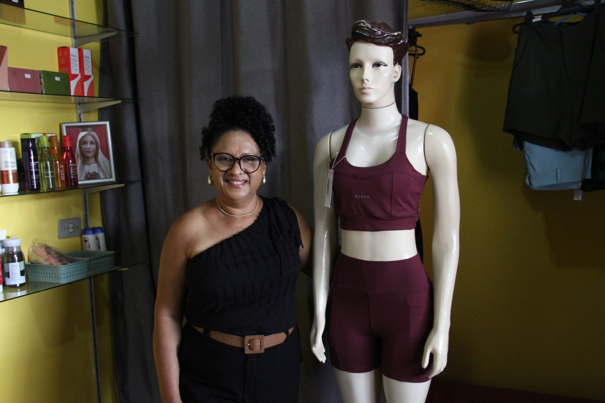 Nazaré encontrou na moda fitness uma oportunidade de ampliar a renda e conquistar mais autonomia. Além do espaço físico, a loja também funciona no ambiente virtual, onde mantém contato direto com os clientes. Mas a ideia do negócio surgiu longe da vitrine e das araras, dentro de uma academia.