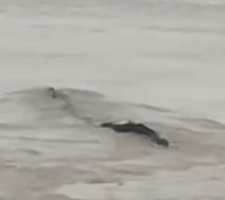 Animal misterioso é flagrado nadando ao lado de enorme hidrelétrica