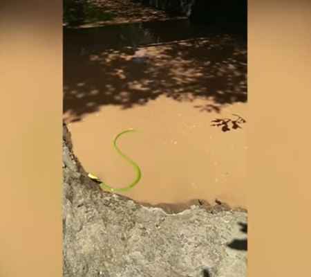 Moradores se reuniram para acompanhar um momento curioso, ao avistarem uma cobra verde de aproximadamente três metros de comprimento se contorcendo e espirrando água em um lago tailandês. As informações são do Sputnik.