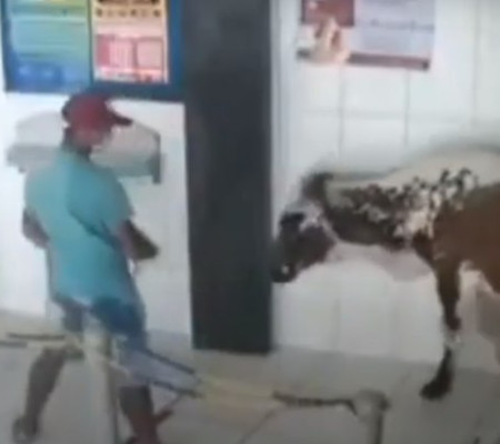 Uma visita inesperada ocorreu nesta quinta-feira (7) em uma lotérica do município de Poção, no agreste pernambucano, enquanto alguns trabalhadores sacavam o auxílio emergencial de R$ 600, iniciativa do governo federal para minimizar os efeitos do novo coronavírus (Sars-Cov-2) na economia. Aguardando o atendimento na fila, as pessoas foram surpreendidas quando viram um boi entrando na agência. As informações são do IG.