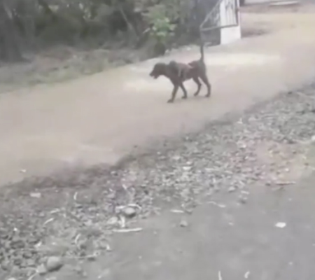 Um cachorro foi pego na câmera dando um filhote de macaco abandonado às cavalitas a uma delegacia de polícia. Acredita-se que o macaco tenha sido separado de sua mãe e preso por alguns homens que prenderam um colar no pescoço, segundo relatos locais.