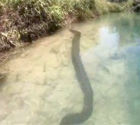 Uma sucuri de aproximadamente 7 metros de comprimento foi flagrada por um casal que descia de boia cross um rio em Bonito, no sudoeste de Mato Grosso do Sul. O vídeo que circula na internet mostra o animal nadando tranquilamente no fundo das águas cristalinas do rio Formoso. Com informações do G1