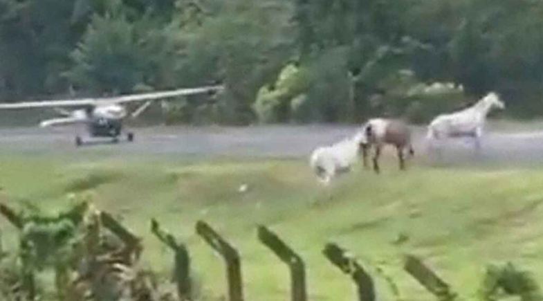 O piloto de um pequeno avião monomotor com seis passageiros viveu um momento de terror ao aterrissar na pista do aeroporto Narcisa Navas, em Acandí (Chocó, Colômbia). Um grupo de três cavalo invadiu a pista no exato momento em que a aeronave tocava o solo.