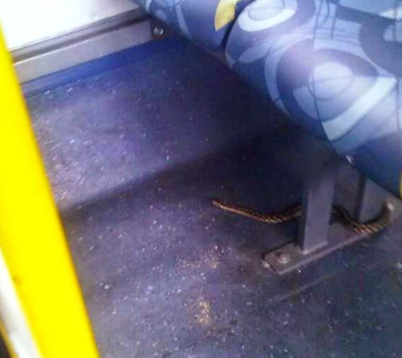 O aparecimento de cobras em carros de passseio é comum, mas agora foi diferente. Passageiros de um ônibus que circula na linha Murinim-Castanheira, região de Belém, levaram um susto, na manhã de segunda (13) ao flagrarem uma cobra tentando entrar no veículo.