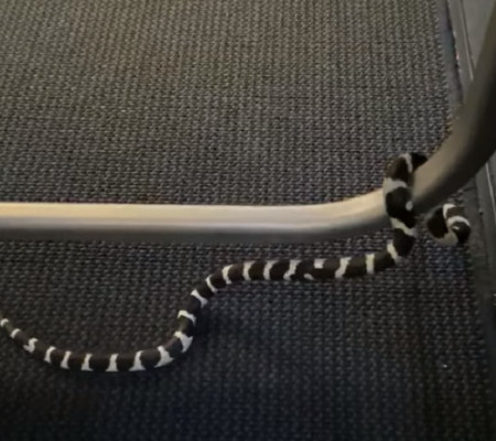 O vôo 2706 da Alaska Air, operado pela Horizon air, nos EUA tinha um passageiro clandestino improvável: uma cobra. O réptil em preto e branco foi vista deslizando sob os assentos dos passageiros no avião. Quando avistada, a cobra foi rapidamente reconhecida como animal de estimação.