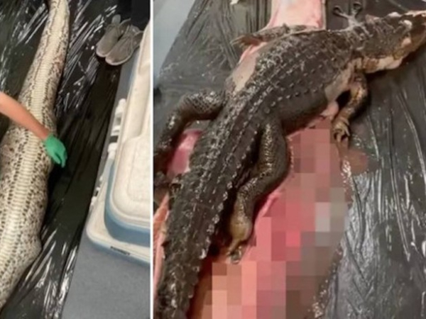 Um vídeo publicado pela cientista americana Rosie Moore mostra o jacaré quase intacto sendo removido de dentro da cobra, que foi morta depois de ter sido descoberta no Parque Nacional de Everglades.