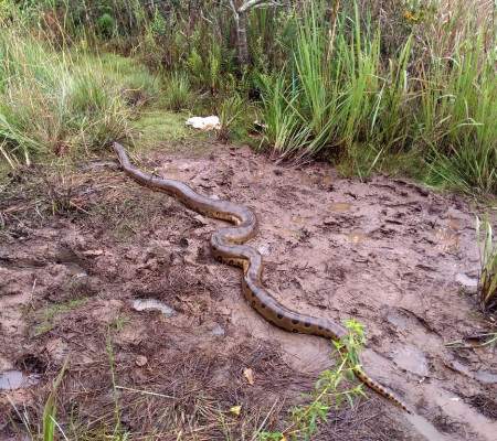 A sucuri é uma cobra encontrada em toda a América do Sul. Normalmente não tem comportamento agressivo e não é peçonhenta.