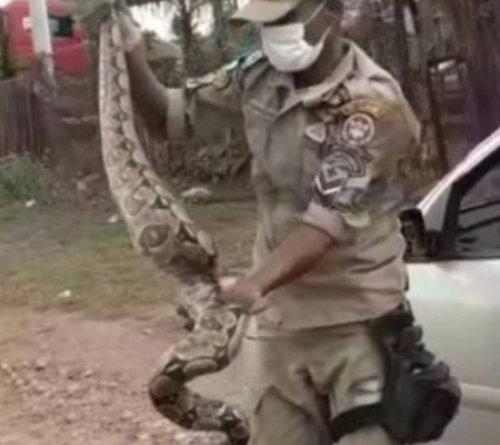 Uma cobra jiboia de 1,70m foi retirada de dentro da engrenagem de um carro de passeio nesta terça-feira (30), pelo Corpo de Bombeiros do Mato Grosso do Sul, na cidade de Ladrário, interior do estado. Imagens divulgadas pela corporação mostram o tamanho do animal “inofensivo” que foi encontrado pela motorista após ela escutar um barulho estranho ao entrar no veículo, dar partida e andar alguns metros. As informações são do IG.