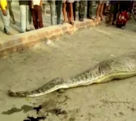 As autoridades indianas foram acionadas no estado de Uttar Pradesh após uma cobra píton "passar mal" no meio da rua, depois de devorar um avantajado banquete.
