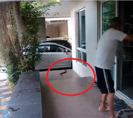 Uma cobra invadiu uma casa no último dia 7 de fevereiro na Tailândia. Vídeos de uma câmera de segurança do local mostram o morador, um idoso que estava no jardim, quando percebeu a visita inesperada. O réptil entrou na residência depois de avistar um pobre gato, que quase virou o prato principal.