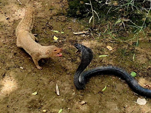 Um vídeo está se tornando viral que mostra uma cobra-real envolvida em uma luta intensa com um mangusto cinza indiano. A cobra-real parece ter entrado no território do mangusto e entrou em um confronto direto com o mangusto. O mangusto e a cobra-real podem ser vistos atacando um ao outro e evitando as mordidas um do outro quando o mangusto finalmente pega a cobra com a boca.