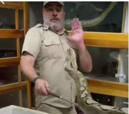 Cobra píton tenta atacar próprio cuidador; assista ao vídeo