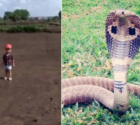 De acordo com o portal Latestly, a gravação feita em Belgaum, na Índia, mostra o momento em que uma criança caminha sob a supervisão do pai, mas em um momento de descuido do adulto, tenta capturar uma cobra-rei. Espécie é a maior cobra venenosa do mundo.