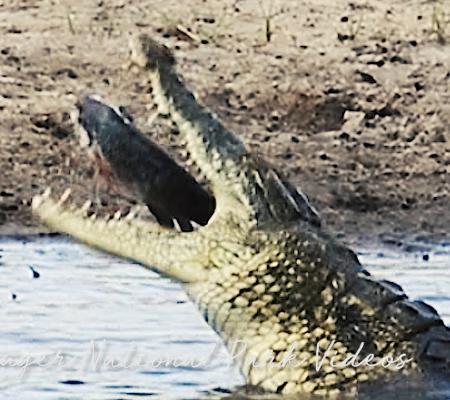 Um monstruoso crocodilo-do-nilo foi flagrado no momento em que fisgou um peixe avantajado no Parque Nacional Kruger, na África do Sul.
