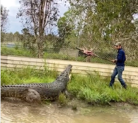 E uma gravação divulgada pelo influenciador Matt Wright em sua conta do Instagram traz mais um retrato do reino animal e da “hora do almoço” de um crocodilo. Nesta oportunidade, utilizando uma vara com um pedaço de carne, o homem mostra como faz para alimentar o animal.