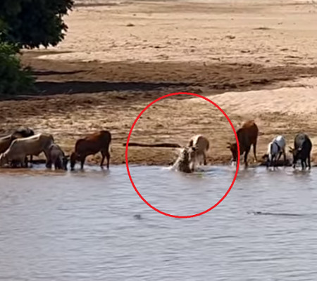 As cenas são fortes e mostra o momento em que bois se aproximam para beber água no rio, em certo momento de descuido de um dos mamíferos, um crocodilo arrasta o boi para dentro das águas. Assim começa uma disputa pelo banquete.