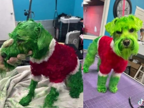 Ashley Spielmann levou o cachorrinho de estimação ao pet shop para preparar o animalzinho para o Natal. Ela pediu ao tosador que fizesse uma tintura no cãozinho para que ele se parecesse com o personagem Grinch. Agora ela está sendo acusada de “abuso de animais” por pessoas nas redes sociais
