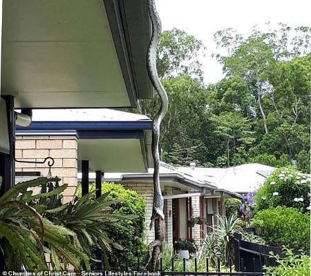 A notícia foi publicada hoje (22) no jornal Daily Mail. A cobra havia deslizado para a Vila de Aposentadoria do Parque das Igrejas de Christ Care, em Nambour, Queensland, na semana passada.