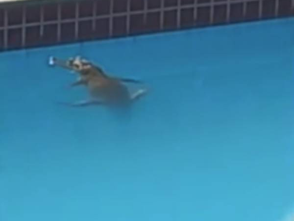 O animal foi avistado pela proprietária do estabelecimento pela manhã, quando um técnico realizava manutenção no equipamento que faz a limpeza da piscina. Após ser localizado, o jacaré submergiu na água para se esconder das pessoas e o sol forte.