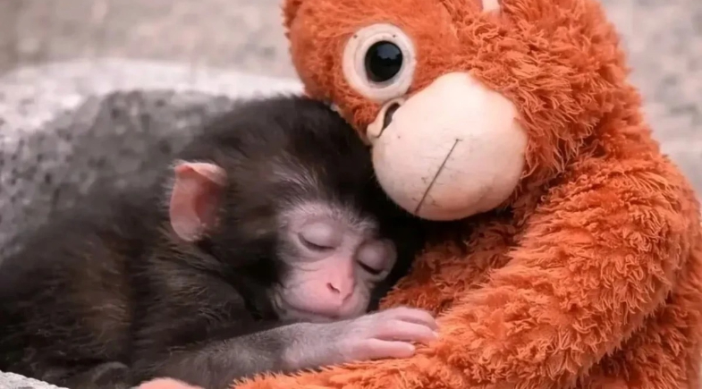 Filhote de macaco rejeitado pela mãe comove ao se apegar a bichinho de pelúcia em zoo