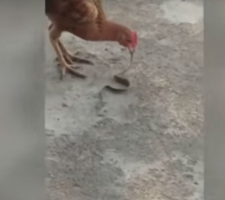 O vídeo foi gravado pelo indiano Hukeri que disse ter ficado preocupado com a presença da cobra no quintal, mas sua galinha resolveu o problema rapidamente.