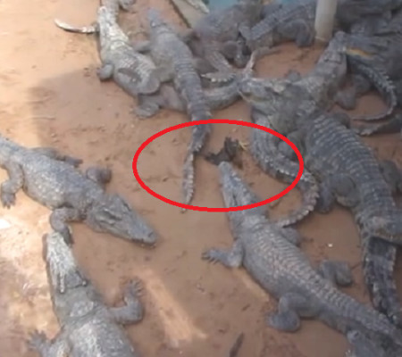 Enquanto um enorme grupo de crocodilos parecia estar tranquilo e inerte debaixo de uma sombra, um jovem rapaz decidiu agradar os répteis com carne fresca.Tendo em mãos uma galinha, o homem jogou a ave em direção aos crocodilos.