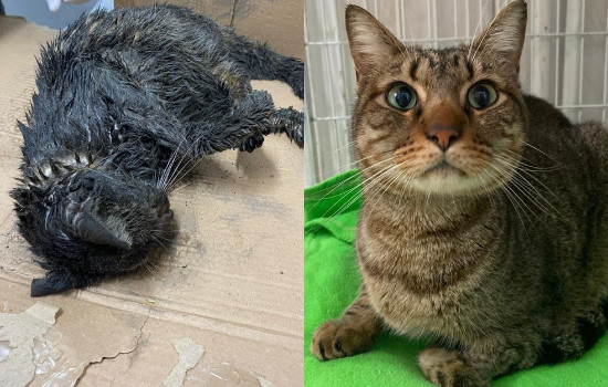 Após ser encontrado jogado na rua, coberto de graxa, lama e sem se mexer, um gato foi resgatado ao conseguir miar e mostrar que estava vivo a uma pessoa que passava pela rua, em Santos, no litoral de São Paulo. Ele foi diagnosticado com infecção no sangue e intoxicação devido à graxa, e sua temperatura era tão baixa que não pode ser registrada pelo termômetro da clínica que o atendeu, em Santos, no litoral de São Paulo.