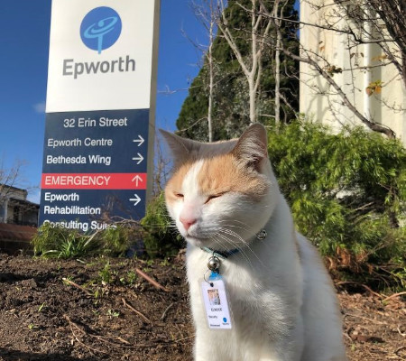 Esse é o caso de Elwood, o mais novo contratado no Hospital Epworth em Richmond na Austrália. Ele trabalha na segurança, e sua rotina é andar pelas cercanias do prédio, ficar atento às pessoas que entram e saem, fiscalizar a entrada dos animais e garantir a ordem no local. Ah, e Elwood é um gato. As informações são do Mega Curioso.