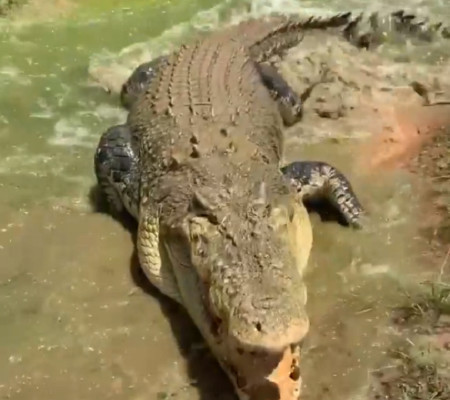 Um aventureiro registrou o vídeo impactante do momento que um crocodilo é alimentado em uma zona de safari na Austrália