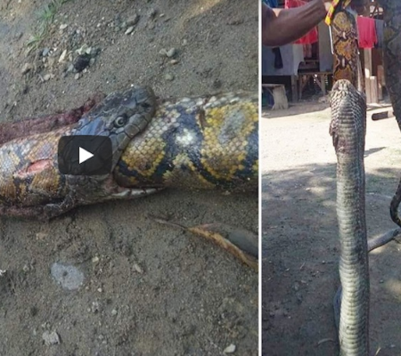 "Há muitas cobras em nossa região, mas essa é a primeira vez que vimos uma cobra devorar uma píton", disse um morador. Segundo os moradores, a cobra tinha quase quatro metros de comprimento, enquanto a píton tinha entre 2 e 2,5 metros.