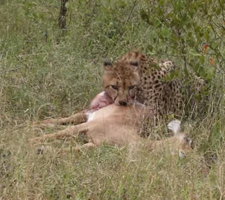 Logo após capturar um impala para se alimentar, a chita examinou a área em busca de possíveis catadores que pudessem interromper seu banquete. Alertamos que as imagens a seguir contém conteúdo forte.
