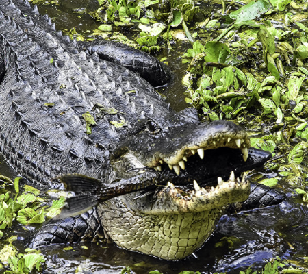Foi quando ela percebeu que o réptil estava com algum animal grande entre suas mandíbulas, informou o portal Geek.com. Jacaré gigante é flagrado comendo um "tubarão" no Refugio Nacional de Vida Selvagem. Ainda há dúvidas sobre qual espécie estava sendo devorada pelo réptil.