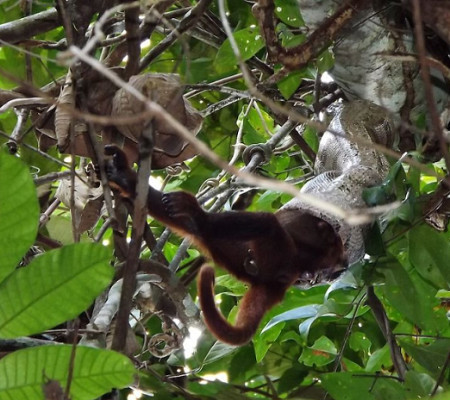 Uma expedição de cientistas brasileiros capturaram um momento incrível e raro, na Floresta Amazônica, no qual uma jiboia ataca uma macaca bugio adulta e a devora inteira sobre uma árvore.