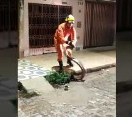 Nas imagens é possível ver um corajoso bombeiro pegando a cobra, na beira da calçada, com rapidez e profissionalismo. Após o resgate, a jiboia foi devolvida para uma região de mata.