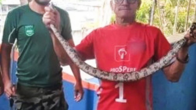 Uma jiboia foi capturada por um morador, em Nova Iguaçu, Rio de Janeiro. O caso aconteceu no último sábado (10). Uma vizinha do homem localizou o animal no quarto de sua casa. Depois de capturá-la, ele decidiu levá-la para a Defesa Civil.