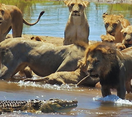 Entretanto, a alcateia não contava com a presença de um convidado inesperado. Isso por que um crocodilo "atrevido" resolveu aparecer e tirar o sossego dos felinos em meio ao banquete. No vídeo é possível observar a surpresa dos leões e, ao mesmo tempo, uma certa preocupação com a presença do réptil.