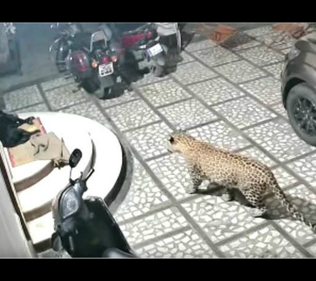 Um leopardo foi filmado atacando um cachorro enquanto dormia do lado de fora de sua casa. A filmagem aterrorizante mostra o leopardo se aproximando lentamente do cão adormecido.