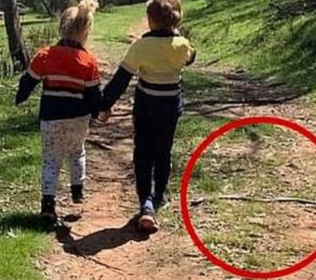 Ao chegar em casa e revisitar as imagens, o susto: a poucos centímetros das duas crianças, a mãe viu que passava uma Cobra Marrom , nativa da Austrália.