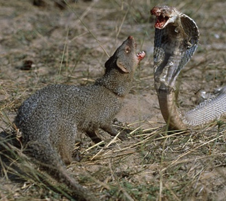 A espécie dos mangustos são imunes ao veneno de cobras, por isso eles matam e comem esses répteis, segundo o National Geographic. Um vídeo mostra a briga de um deles com uma cobra naja, a mais venenosa do mundo.